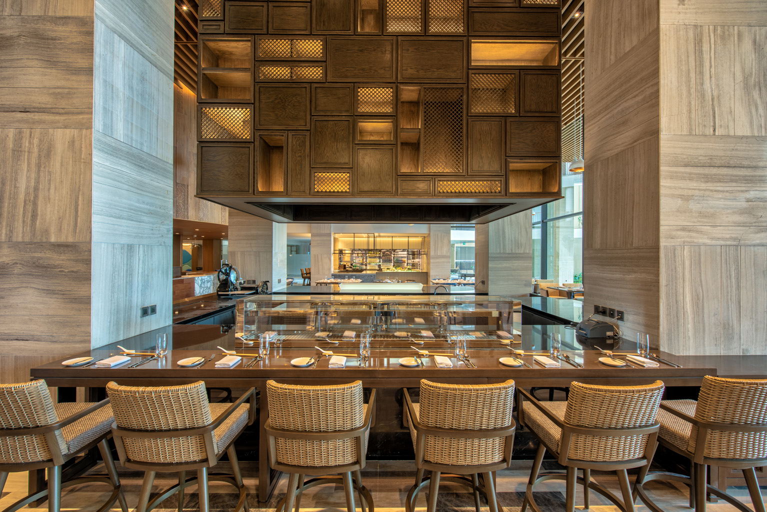 InterContinental Phu Quoc Long Beach Resort is a luxurious five-star resort located on Phu Quoc Island, Vietnam. The resort offers 459 elegantly appointed rooms, suites, and villas, each designed to provide comfort and sophistication. Guests can indulge in a variety of dining experiences across six innovative restaurants and bars, catering to diverse culinary tastes. The design draws inspiration from its prime location along Long Beach, incorporating wave-inspired architecture with curving facades and textured walls that mimic the ocean’s movement. The accommodations feature aqua motifs of coral and turquoise, reflecting the island’s natural beauty and providing a distinct sense of place.